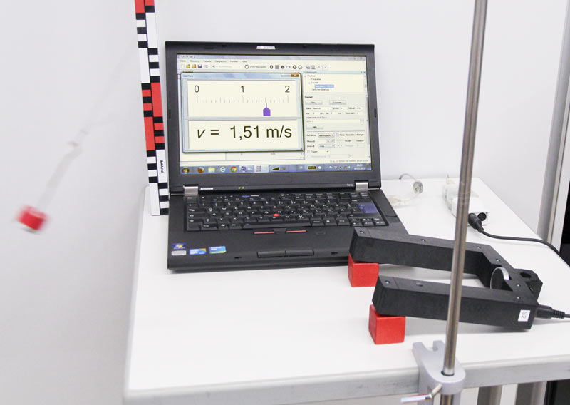Ziel ist es, einen Zusammenhang zwischen der Starthöhe des Pendels h (als Repräsentant der pot. E) und der Geschwindigkeit beim Nulldurchgang v (als Repräsentant der kin. E) zu ermitteln.