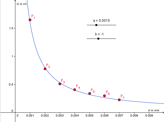 Auch die Messpunkte K und L scheinen rein graphisch einen antiproportionalen Zusammenhang zu bestätigen. Andere Analyseverfahren lassen für die Punkte deutliche(re) Abweichungen erkennen. |