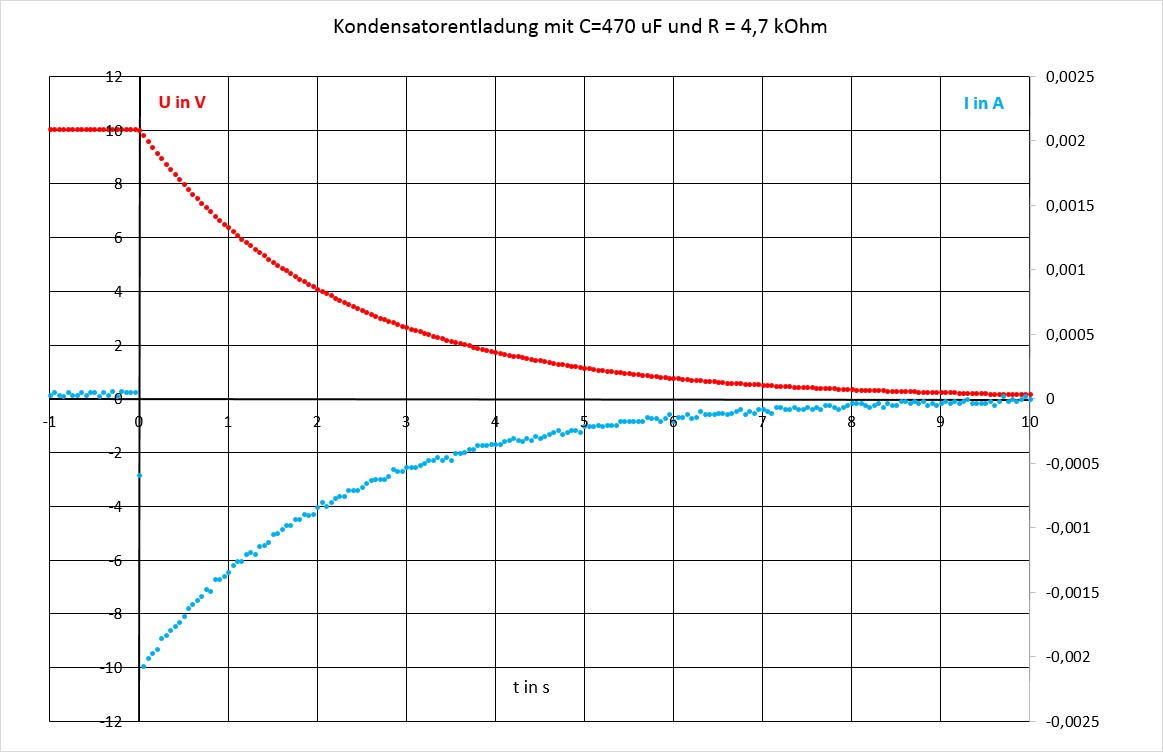 U0 = 10,02 V; C = 470 µF; R = 4,7 kΩ