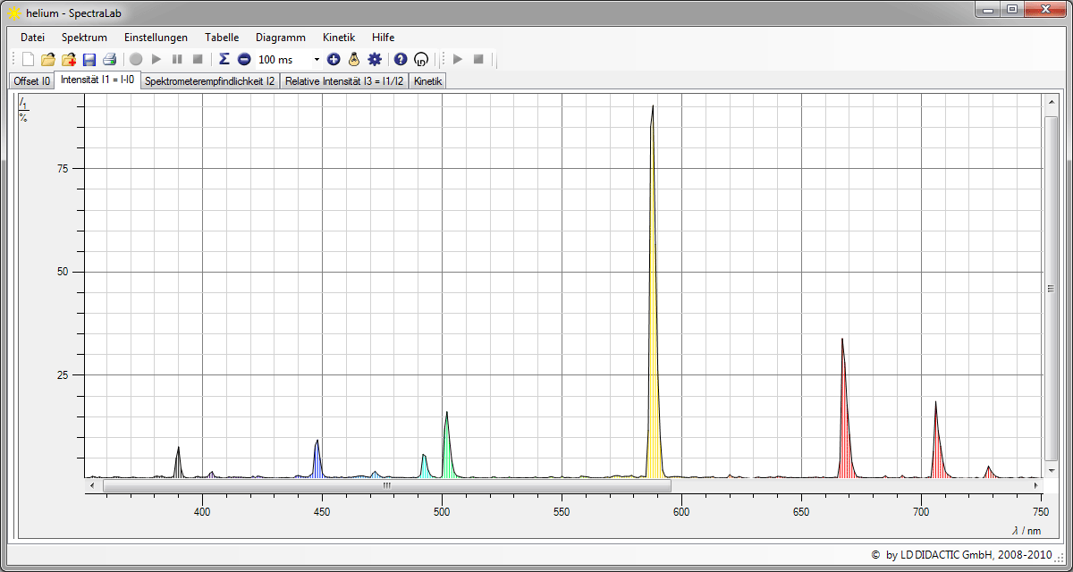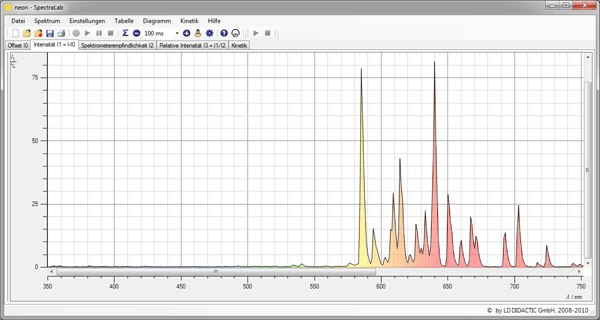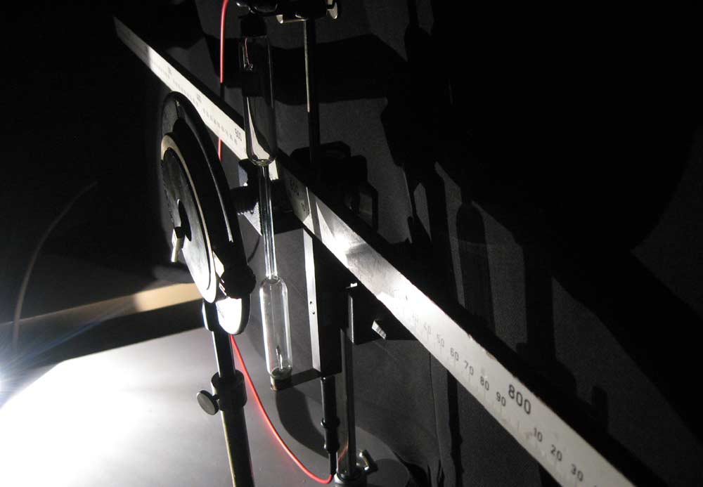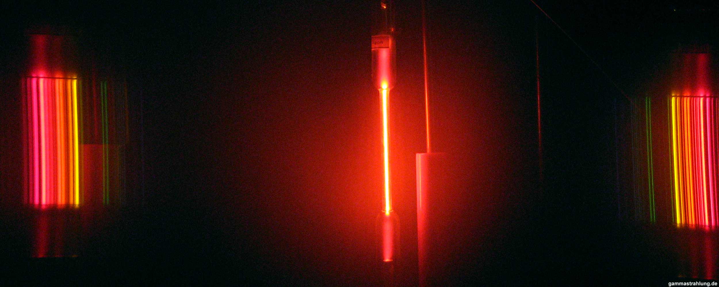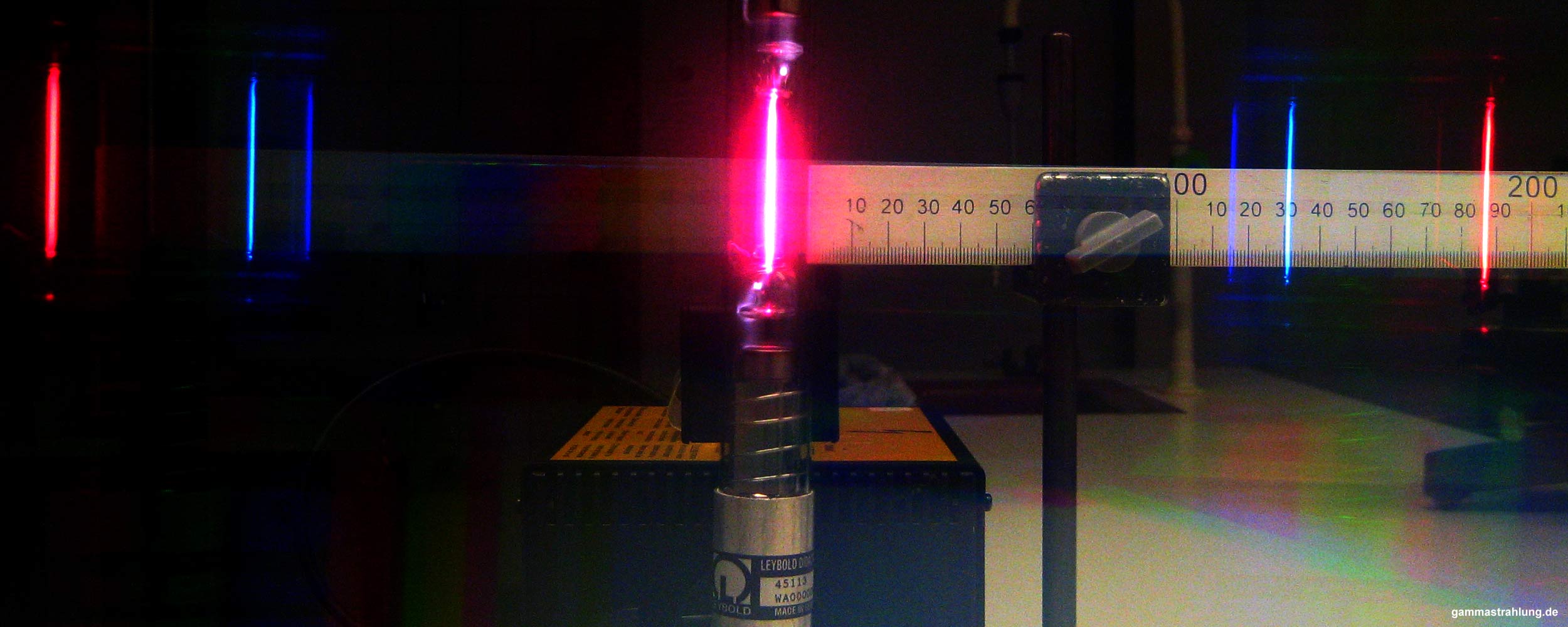 — U: 2..5 kV, Zündspannung evtl. höher. Evtl. vor die Röhe in den Strahlengang noch einen verstellbaren Spalt einfügen.