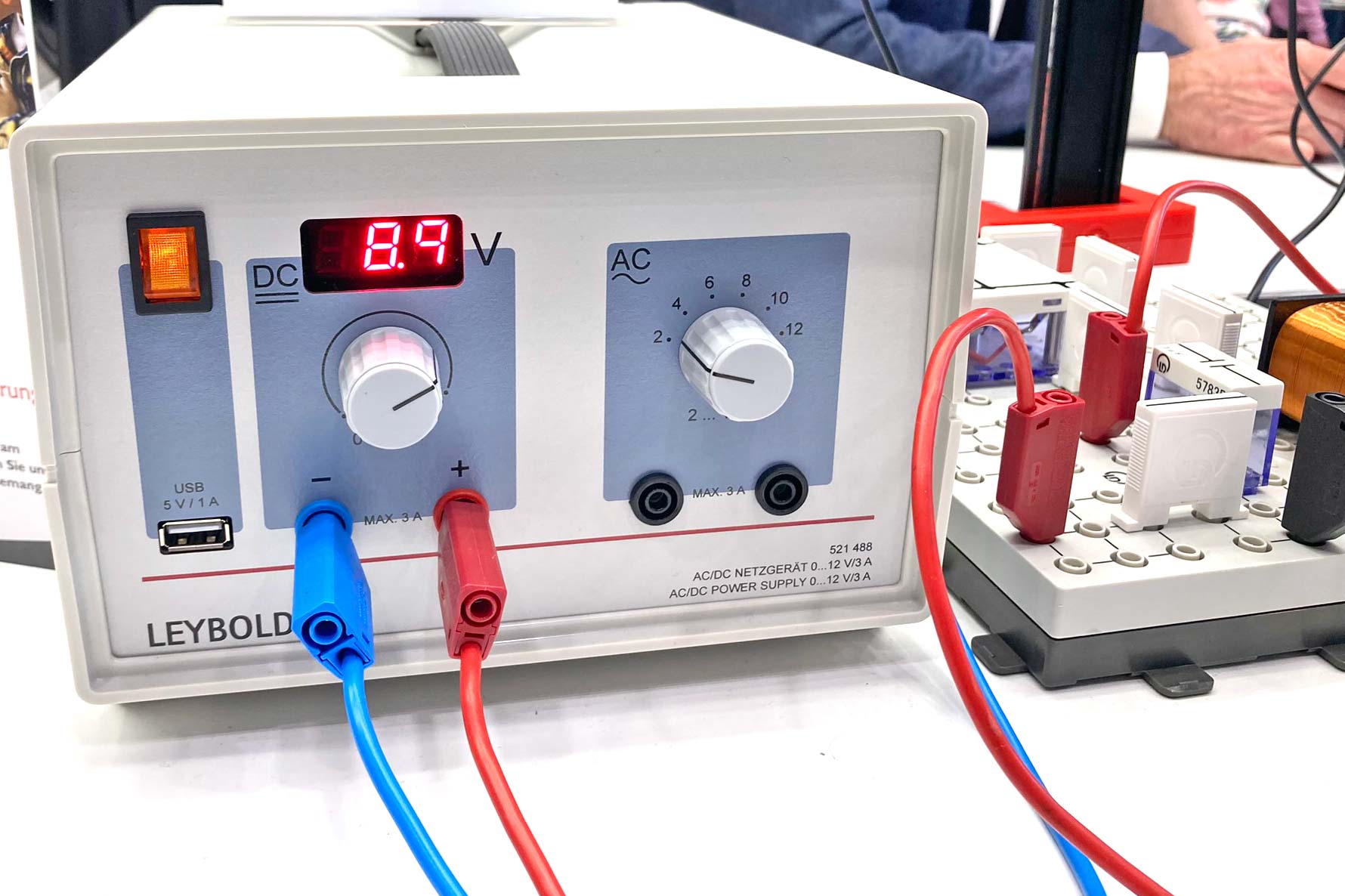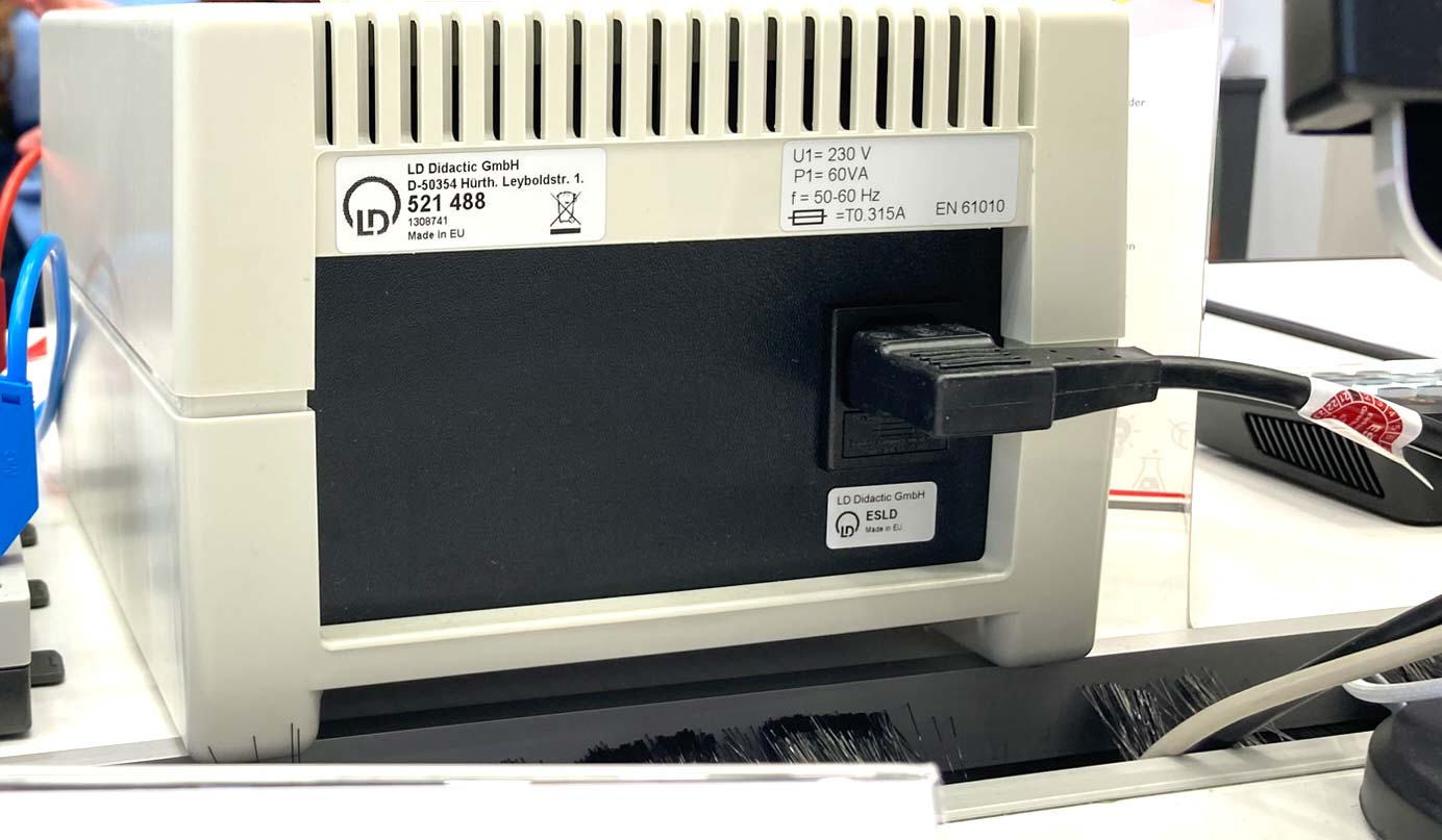 2024 (didacta Köln) | Leybold | Neues Netzgerät für Schülerversuche. Nach der mutmaßlich in China zugekauften 521485 und dem Frederiksen-Derivat 521487 kommt mit der 521488 ein Schülernetzteil aus Eigenproduktion (364,00 Euro zzgl. Mwst; Made in EU, Ungarn). Die Parameter sind gegenüber dem Vorgänger leicht verbesser: Es wurde eine USB-A-Buchse hinzugefügt und die Wechselspannung lässt sich in 2-V-Schritten verstellen (2V ~ 4V ~ 6V ~ 8V ~ 10V ~ 12V). Geblieben ist leider das leyboldtypische weiße Gehäuse, das nach wenigen Jahren oft nicht mehr gut aussieht. [521488, Foto 1, Foto 2] |
