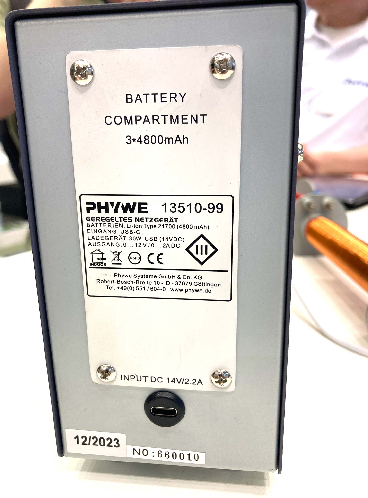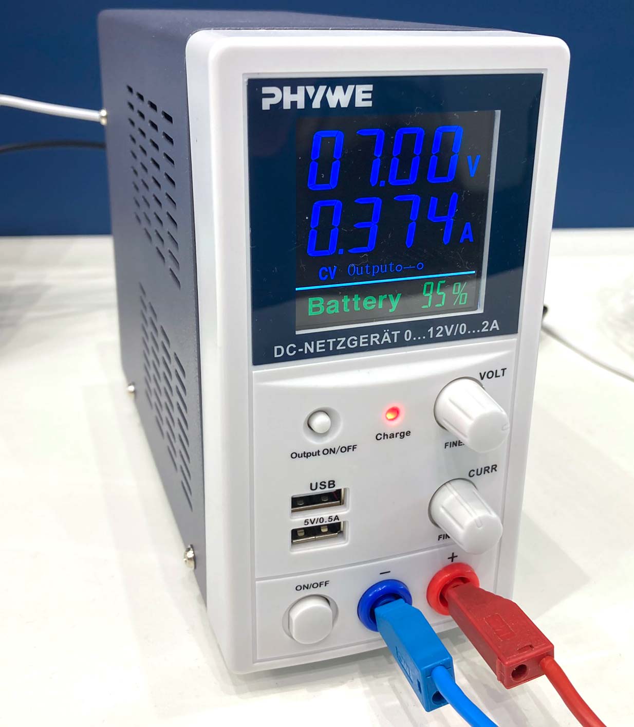 Phywe | Neues Netzgerät für Schülerversuche mit eingebautem Akku: Das neue "Netzgerät" hat einen eingebauten Akku und wird per USB-C geladen (14 V). Daten:0 …12V / 0 … 2 A DC; USA-A, Nr. 13510-99; 269 Euro zzgl. Mwst [Foto 1, Foto 2] | |