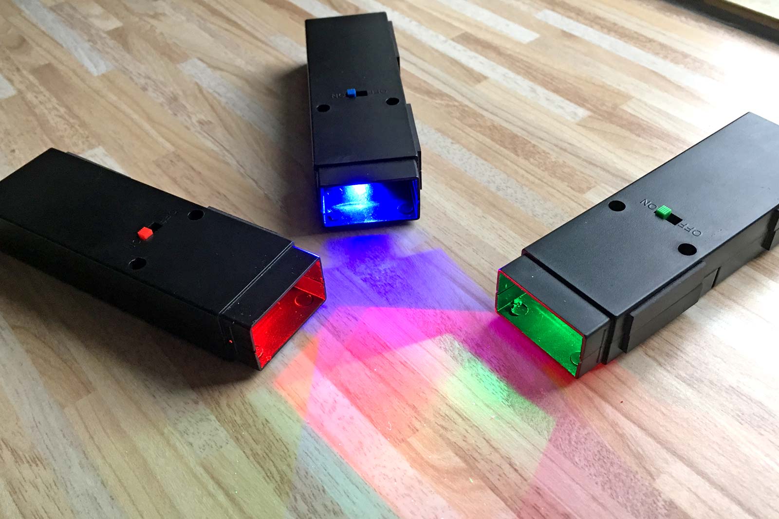 Preisgünstige Strahler zur Farbmischung, leider mit Batterie-Betrieb.
