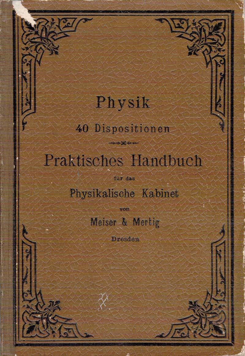 Meiser & Mertig (Hrsg.): Physik - 40 Dispositionen für die wichtigsten Lehrstunden der Physik - Praktisches Handbuch für das physikalische Kabinett von Meiser & Mertig. Im Selbstverlag, Dresden, 3. Auflage 1895